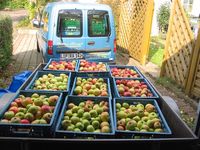 Der Direktsaft wird nur aus eigenen angelieferten Früchten gepresst, wenige Sekunden im schonenden Durchlaufverfahren auf 80 C steriliisert und heiß in Kunststoffbeutel mit Zapfhahn abgefüllt.